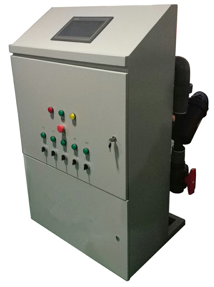 水肥一體機系統結構包括:控制柜、觸摸屏控制系統、混肥硬件設備系統、無線采集控制系統。支持pc端以及微信端實施查看數據以及控制前端設備;水肥一體化智能灌溉系統可以幫助生產者很方便的實現自動的水肥一體化管理。系統由上位機軟件系統、區域控制柜、分路控制器、變送器、數據采集終端組成。通過與供水系統有機結合,實現智能化控制。可實現智能化監測、控制灌溉中的供水時間、施肥濃度以及供水量。變送器(土壤水分變送器、流量變送器等)將實時監測的灌溉狀況,當灌區土壤濕度達到預先設定的下限值時,電磁閥可以自動開啟,當監測的土壤含水量及液位達到預設的灌水定額后,可以自動關閉電磁閥系統。可根據時間段調度整個灌區電磁閥的輪流工作,并手動控制灌溉和采集墑情。整個系統可協調工作實施輪灌,充分提高灌溉用水效率,實現節水、節電,減少勞動強度,降低人力投入成本。