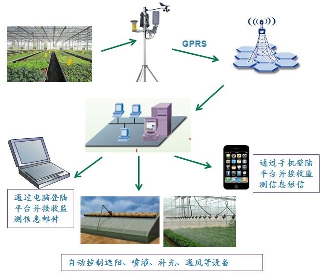 溫室大棚智能化遠程管理,通過溫室環(huán)境監(jiān)測對種植環(huán)境的空氣溫濕度、土壤溫濕度、光照度、二氧化碳濃度等信息進行采集,對采集的數(shù)據(jù)進行分析,根據(jù)參數(shù)的變化實施調控或自動控制溫控系統(tǒng)、灌溉系統(tǒng)等現(xiàn)場生產(chǎn)設備,保證農(nóng)作物的生長環(huán)境、促進農(nóng)業(yè)生產(chǎn)的高產(chǎn)!
