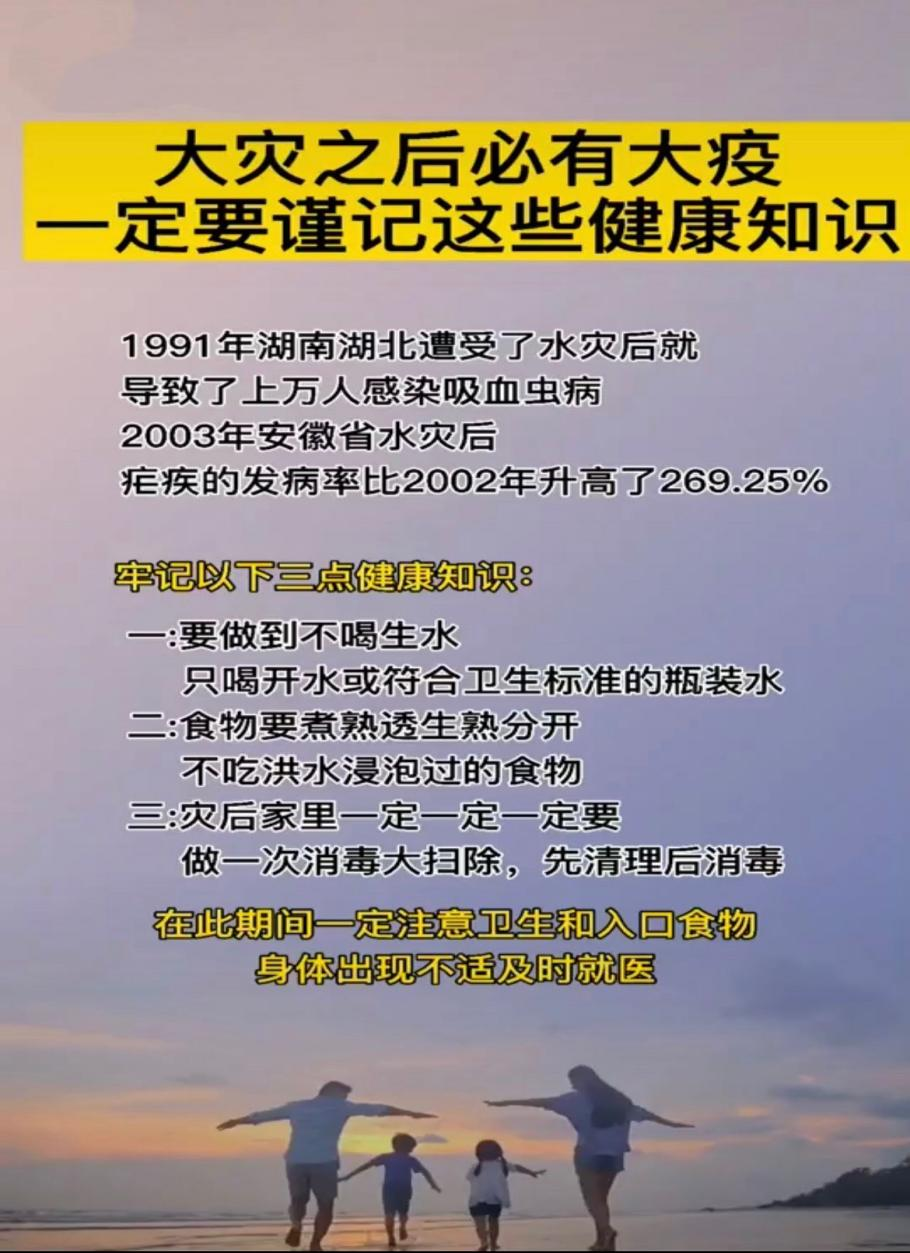 天意新能源溫馨提醒大家:目前洪水已基本停止,有些地區水位還沒完全撤退,出門還是要必備防護措施,為了防止災后可能產生的相關疫情,請大家高度重視。